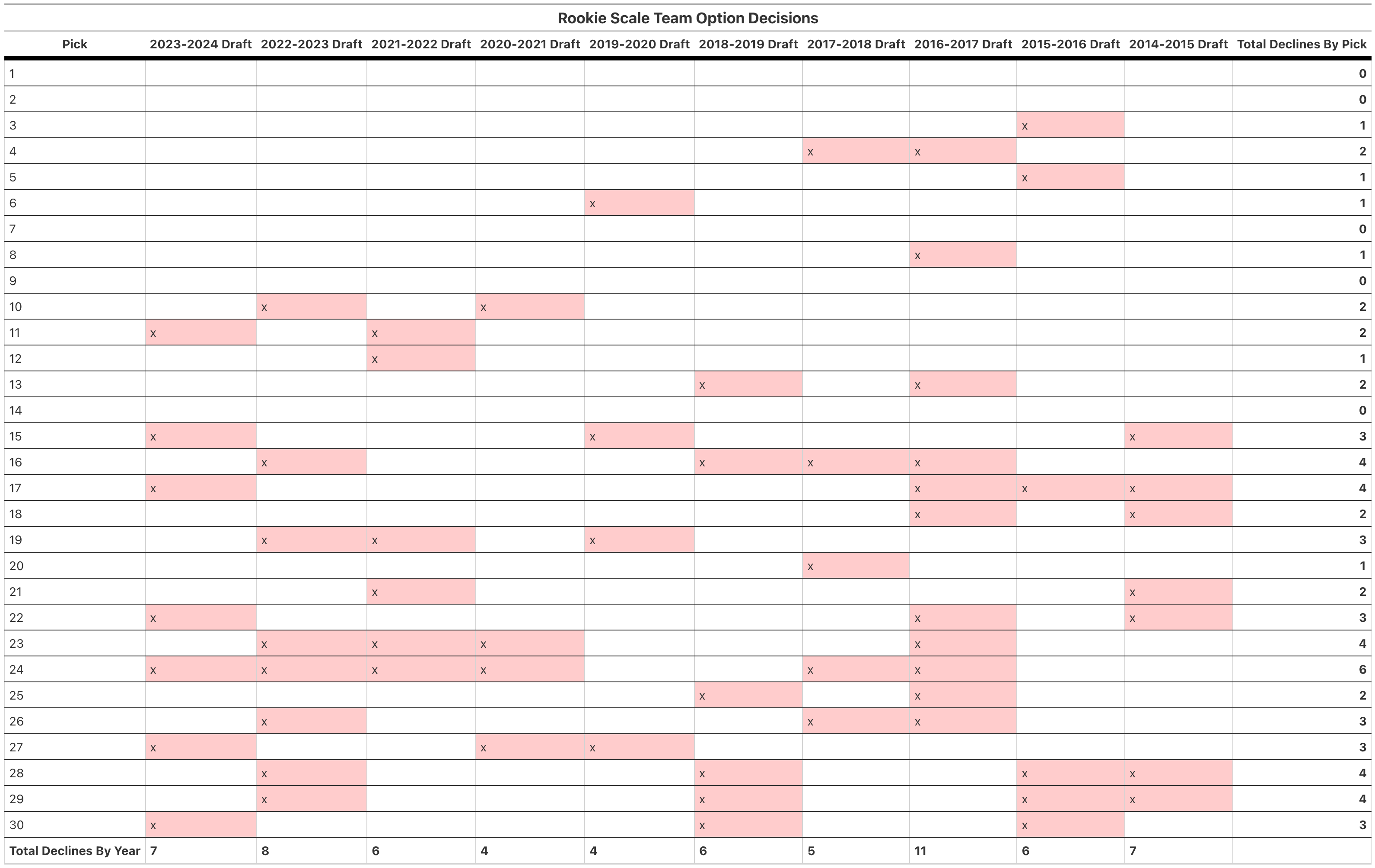 The Rookie Scale Team Option Decisions