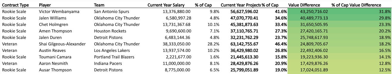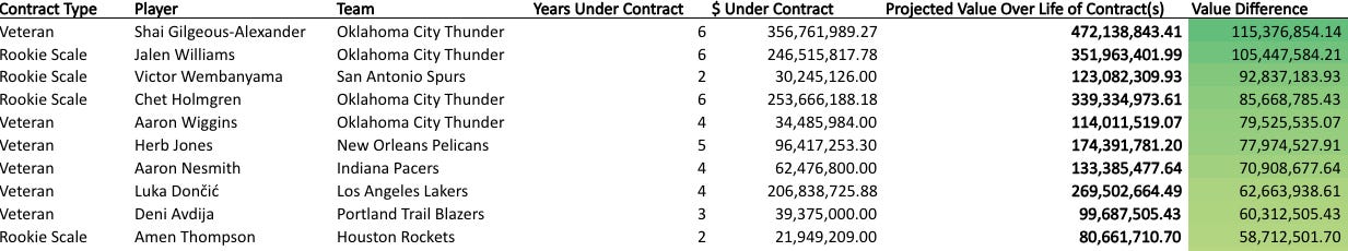 We have seen a slight increase over the last two years in total fourth year declines, and I think its something that teams should probably be more proactive on going forward. Based on the rookie scale contracts set by the CBA, that fourth year can be anywhere from a 26% to 81%(!) increase over the third year salary. Jett Howard was set to make $7.3 million next season on a team that is already over the first apron next season. They couldn’t really afford to pick up that team option, and instead welcomed the risk of Howard outplaying that valuation this season, with the team unable to pay him more than the turned-down team option amount. I look at a guy like Marcus Sasser, who had his $5.2 million option guaranteed for next year and may have already lost his job to a breaking out Daniss Jenkins (More on him below). Detroit could conceivably have significant cap space aspirations next summer, but would now have to probably incentivize someone to take on Sasser’s contract if they would want to clear more space. They could have turned down that option to preserve cap space flexibility while still maintaining the ability to keep Sasser around, albeit at the risk of him getting an offer that the Pistons couldn’t match. It’s exactly what we saw the Clippers, who could also have significant cap space, do when they turned down Kobe Brown’s $4.8 million option. It is a risk-reward analysis that teams have generally leaned conservatively historically.